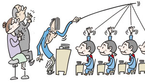 每次老师提问,全班学生无一例外统统举手,热烈响应;无论多难的问题,一定有学生能回答出来;一些需要即兴发挥的开放式问题,学生也回答得十分精妙,从无卡壳或冷场现象。听课教师反映,课堂上过于活跃的师生问答,“有点像表演”。有位学生下课后道出了原委:“怎么可能回答不流利呢?上周这堂课我们都上过三遍啦!我回答的这三个问题比较难,都是老师事先指定好的。其他简单的问题,一般同学都能回答,所以老师要求所有同学举手抢答。”