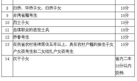 获田径、篮球、足球、排球、乒乓球、武术、游泳、羽毛球等八项其中之一国家二级运动员(含)以上称号并经省招生委员会组织测试合格者,高考加10分; 获其他项目国家二级运动员(含)以上称号者不再享受高考加分政策。