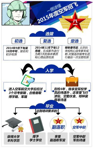 9月11日,四川省2015年度空军招飞工作会议在成都召开,四川省2015年度空军招飞正式启动,下周起可报名。2015年空军招飞继续沿用2014年度招飞的新政策,执行心理品质成绩可以折算为高考(微博)成绩,最高心理品质成绩能抵30分高考成绩。