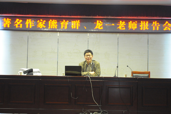 4月11日晚,著名作家熊育群,龙一老师来到丰县中学,为学生作报告。