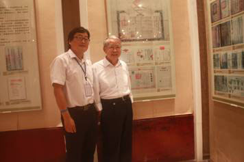 李吉均院士与卢前松校长在李院士的中学毕业证前合影