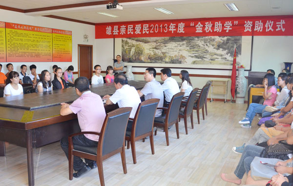 8月30日,雄县2013年“金秋助学”贫困生资助仪式在雄县中学举行。县委办常务副主任王胜、县教育局长赵勇鸿、县亲民办副主任王峰、雄中校长高景奇出席,雄县中学受资助的84名被本科院校录取的学生参加了会议。