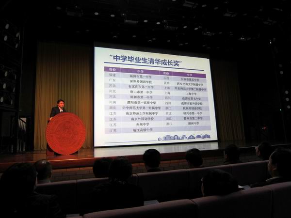 会上,清华大学向参会的全国各知名高中校长做了主题为:2014年清华大学“新百年计划”的政策解读和关于高校招生制度改革高校招生层面的思考的报告,并对该校2013届毕业生的情况进行了总结,进行了“中学毕业生清华成长奖”颁奖仪式。