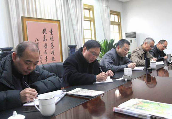 江苏常州市教育局丁伟明局长(中)一行在听取介绍