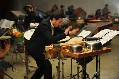 2013年11月23日,下午5点,我校校友,现中央音乐学院打击乐教师刘锐,在母校乐团成立二十周年之际,将自己的硕士毕业音乐会带回了母校乐团,为母校师生带了一次全新的打击乐音乐体验,并且还与学校乐团的小学弟学妹合作演奏了协奏曲《震怒之日》,值得一提的是《震怒之日》这首作品是作曲家为刘锐硕士量身创作,并且这次在母校的演出也是这首作品的首次演出。