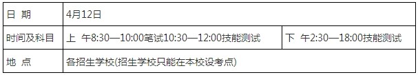 2.技能测试采取面试考查的办法,主要考查考生所报专业基本技能的操作能力和职业素养,测试形式由招生学校根据专业特点自定,满分值为150分。