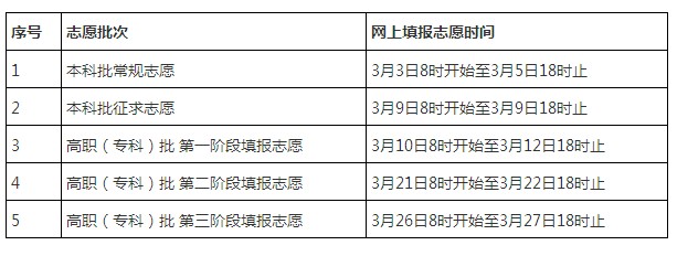 考生填报志愿时间安排