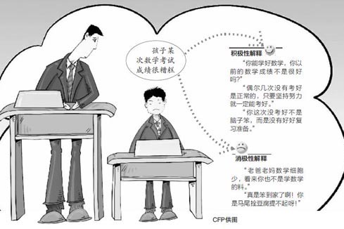 显然,父母这样的解释风格会让孩子更加自卑甚至更加绝望,也就更难以继续努力。这样的解释就是消极性解释。